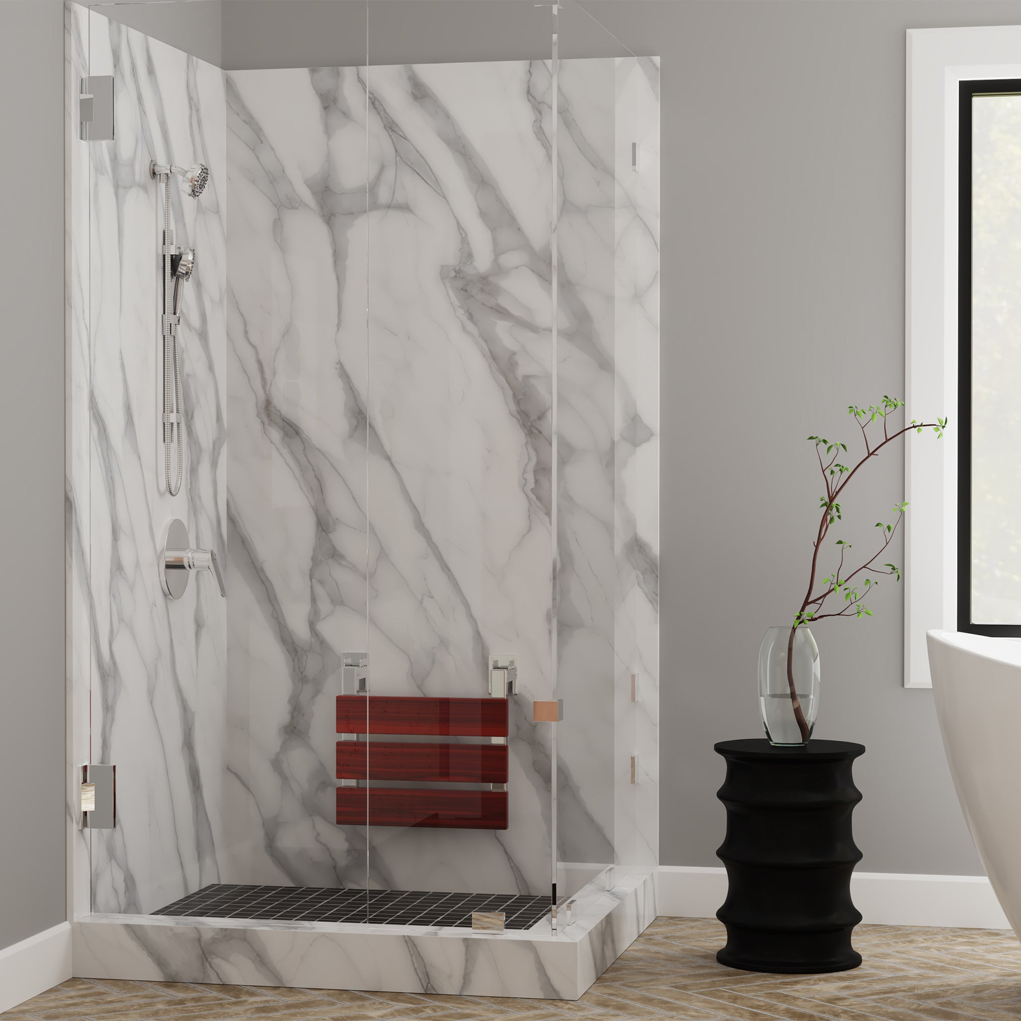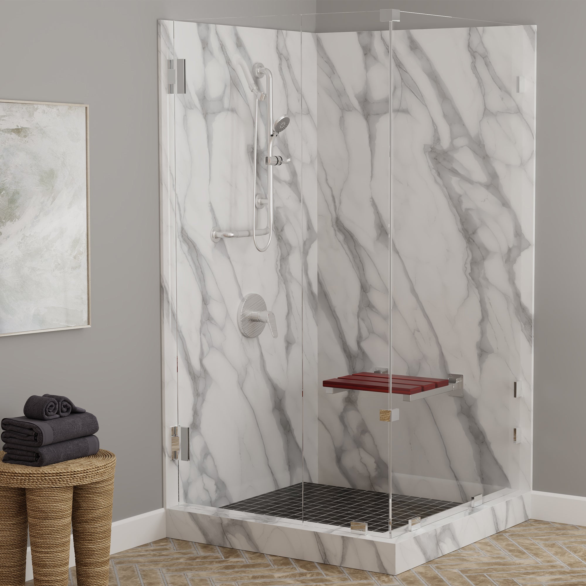 The PULSE ShowerSpas folding ErgoSeat II is an elegant and functional addition to the Aging In Place line. Designed to enhance both safety and the aesthetic appeal of your shower, the ErgoSeat offers a generous seating area of over a square foot. One of the standout features is the slide-in-lock function, ensuring that the seat securely locks into place during use, offering stability and peace of mind. Constructed with industrial-grade stainless steel and a beautiful bamboo wood platform, the ErgoSeat enhances accessibility, comfort and the overall look of your shower space, making it an essential component for creating a safe and inviting bathroom environment.