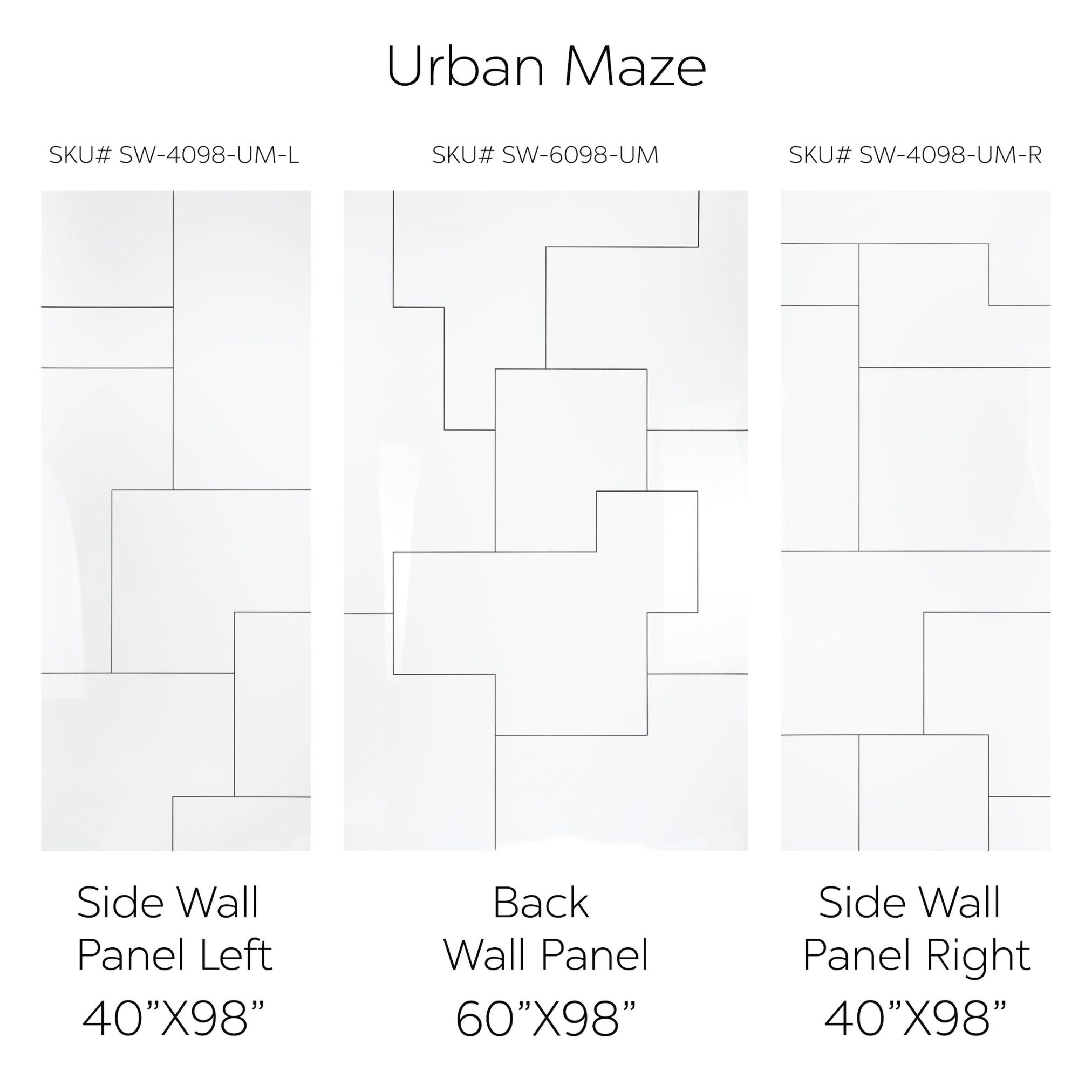 Ella's Bubbles Urban Maze CNC Engravement Pattern in Acrylic, 3-Panel Shower Wall Kit 40x60x98 SW-406098-UM
