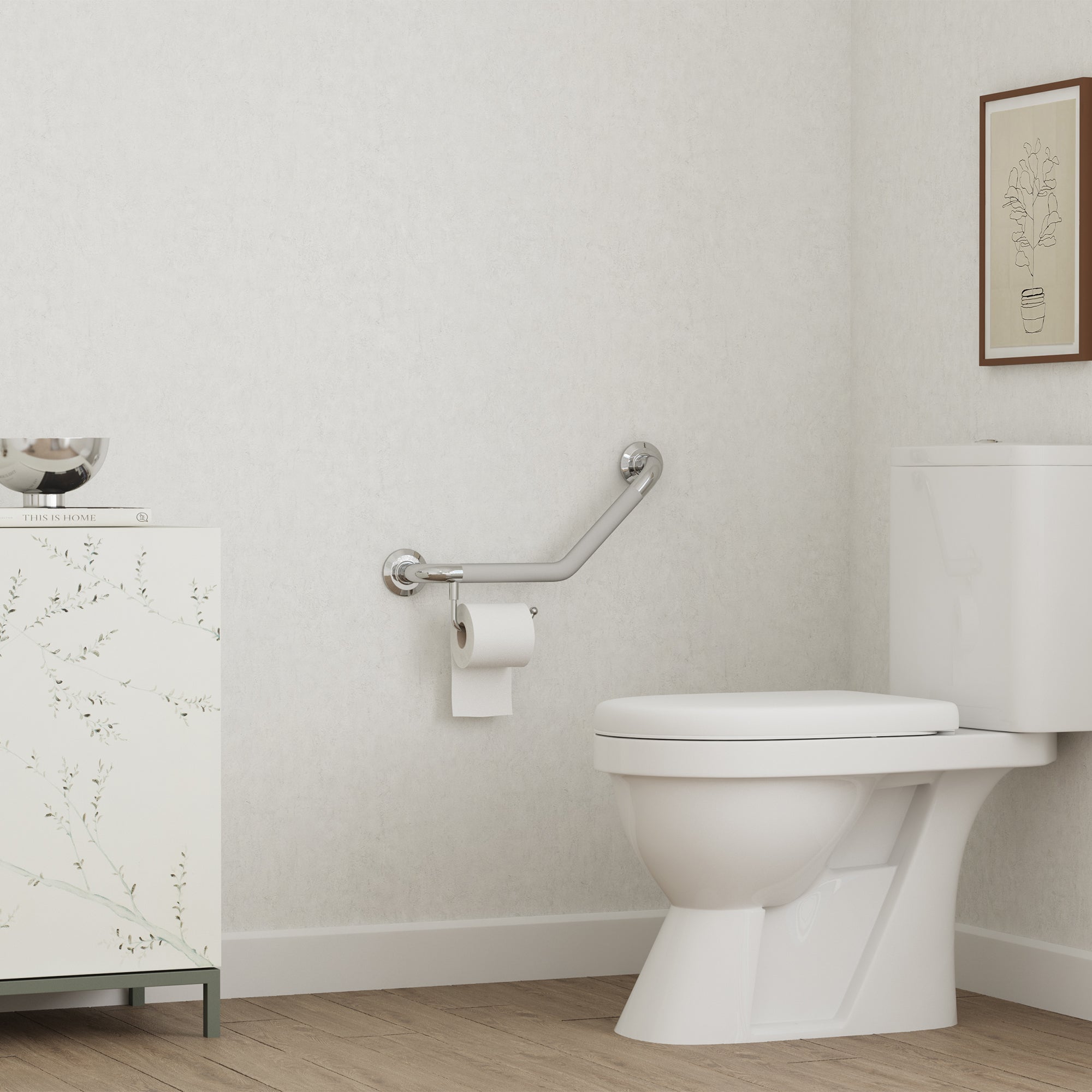 The PULSE ShowerSpas ErgoAngleBar is a state-of-the-art concealed screw grab bar designed to surpass ADA standards with uncompromising quality and functionality. The innovative ergonomic soft grip offers a secure handhold for users of all abilities, promoting safety and confidence in the bathroom. The optional toilet paper holder included ensures essential items are within reach, enhancing the convenience and usability of your bathroom space. Engineered with an industrial-grade build, the ErgoAngleBar is an ideal choice for both residential and commercial settings.