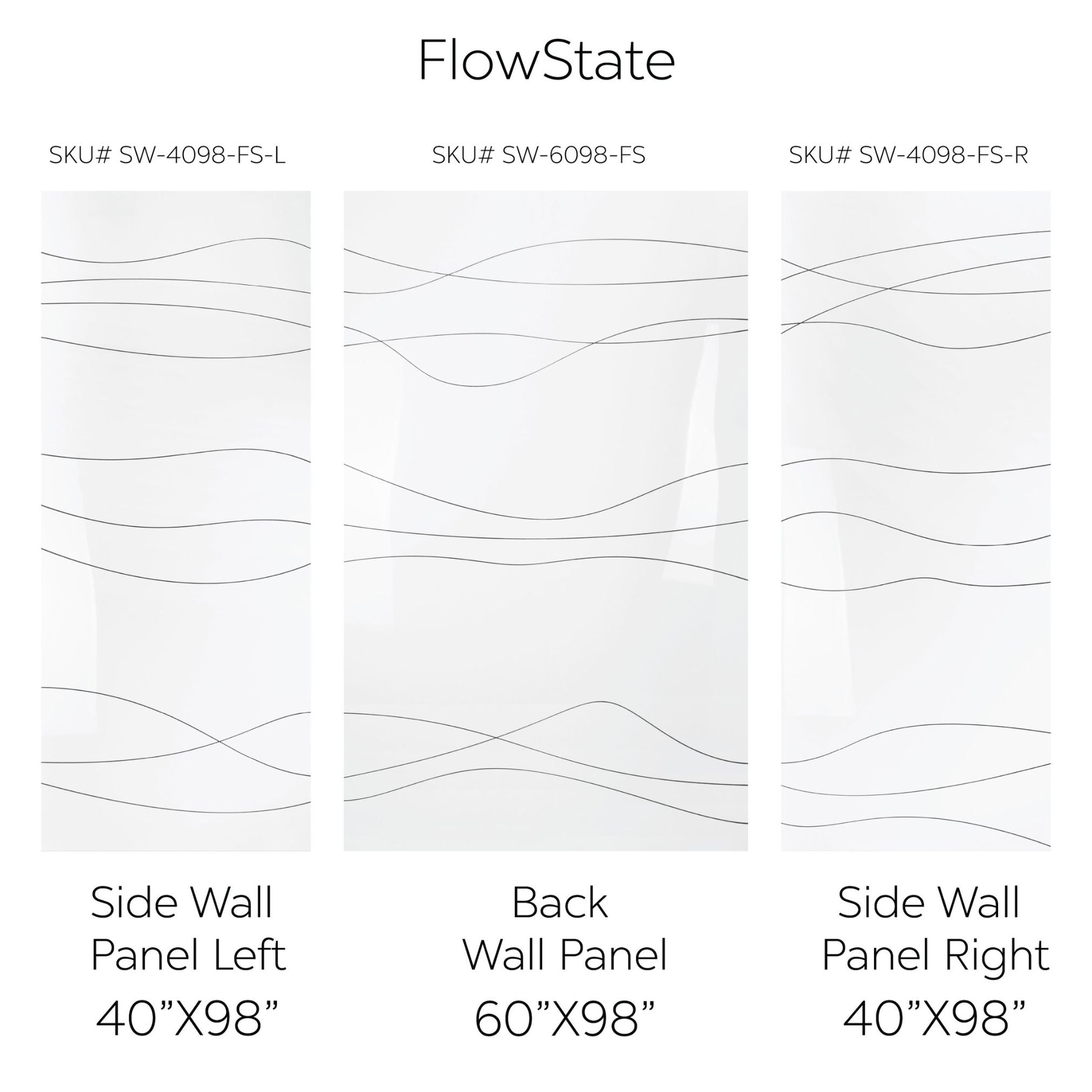 Ella's Bubbles 40" × 60" × 98" Flowstate 3‑Panel Acrylic Shower Wall Kit with CNC‑Engraved Pattern SW-406098-FS