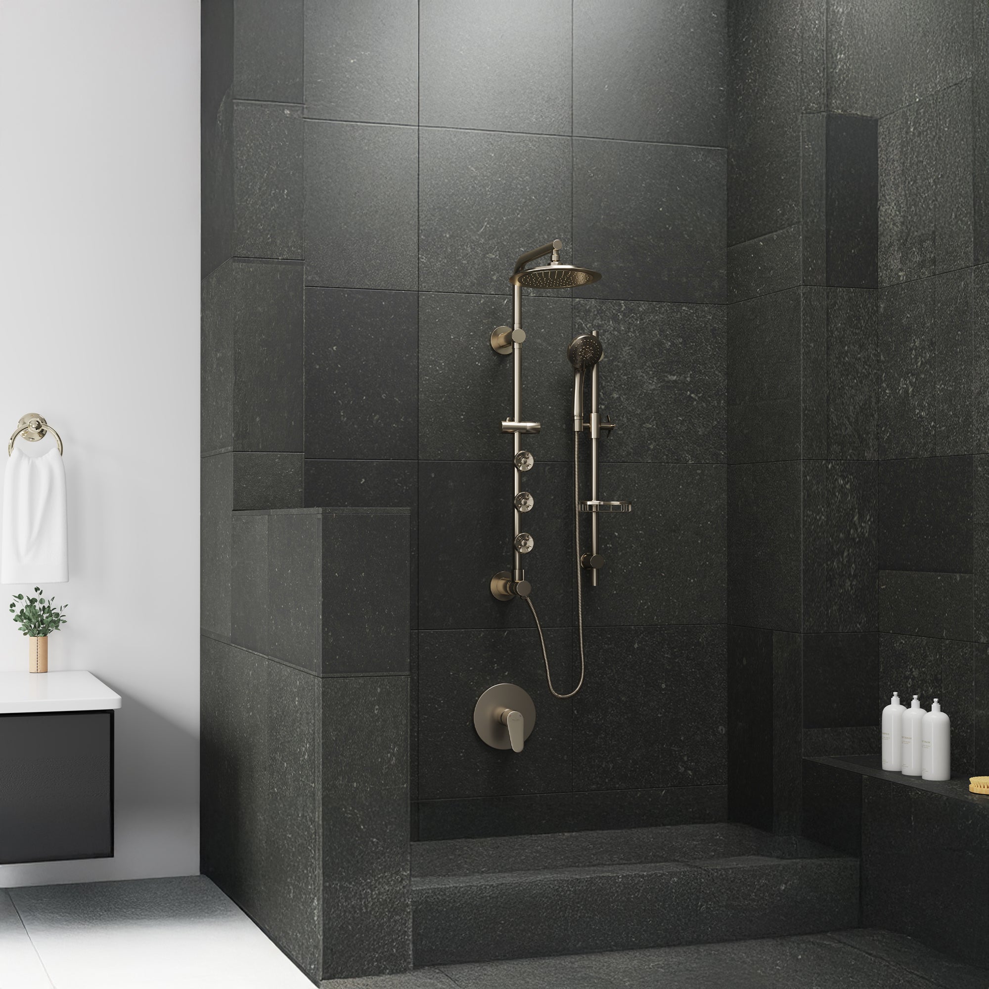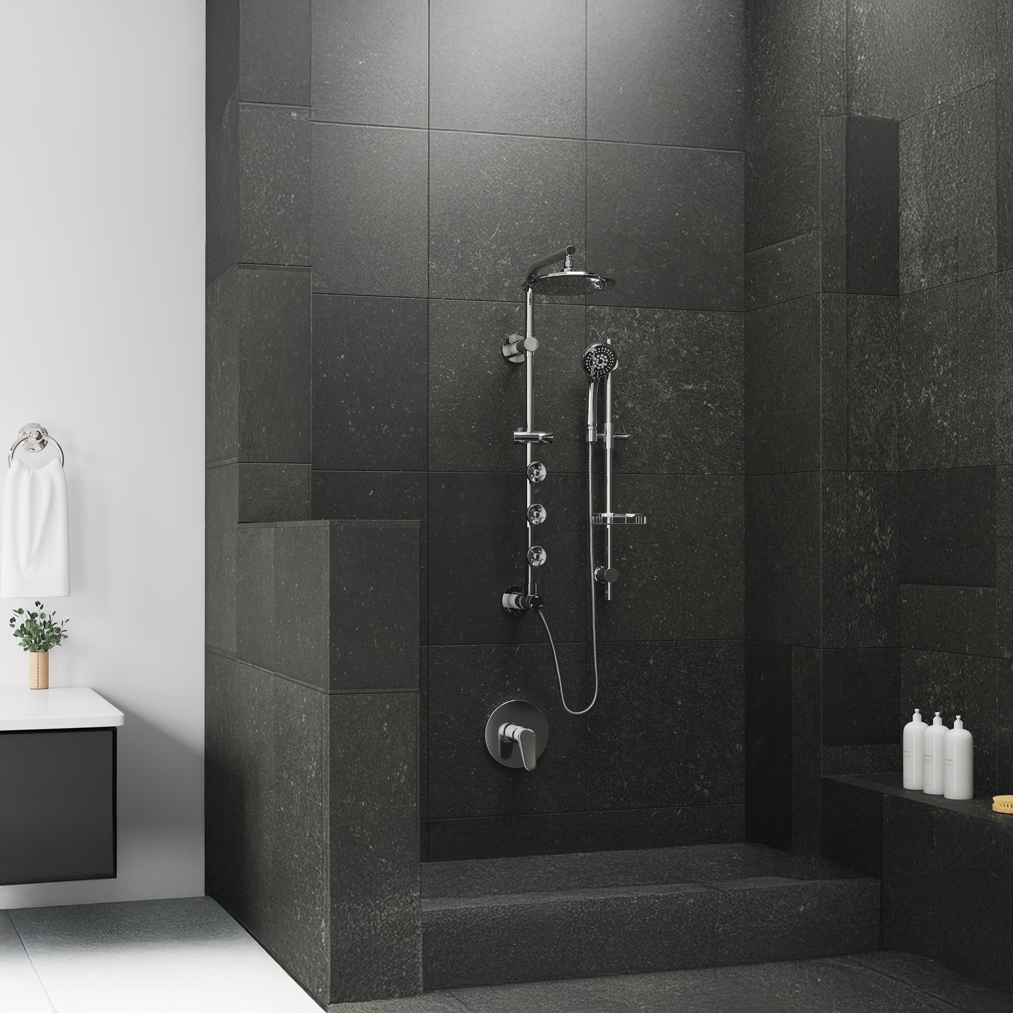 • Adjustable slide bar allows each user to select their preferred height for handheld shower, ensuring comfort for every user