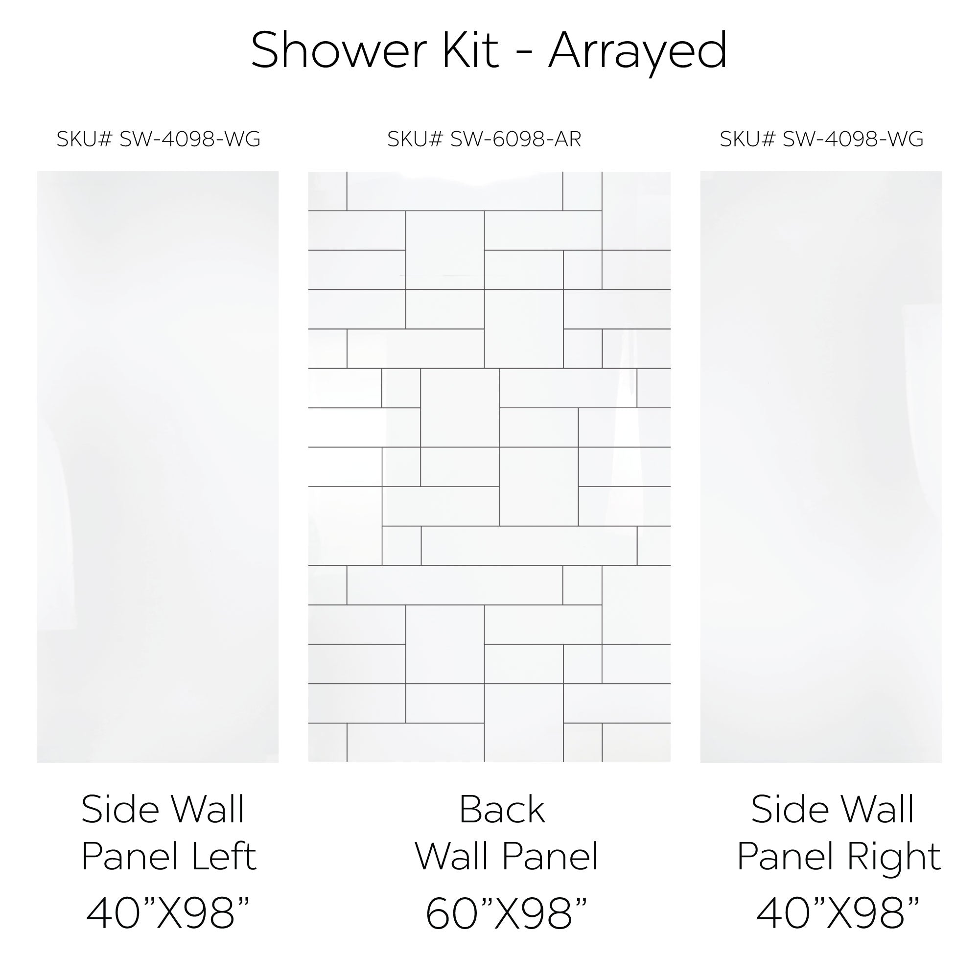 The Ella 3-Piece Acrylic Panel Wall Kit, sized 40″x 60″x 98″, offers an easy installation option, either glued to drywall or over existing tile. It includes a flat acrylic back panel (60” x 98”) and two flat acrylic side panels (40” x 98”), which can be cut to fit your shower space. The panels are rolled and shipped in a 24” x 24” x 61” box to any location in the USA or Canada.
