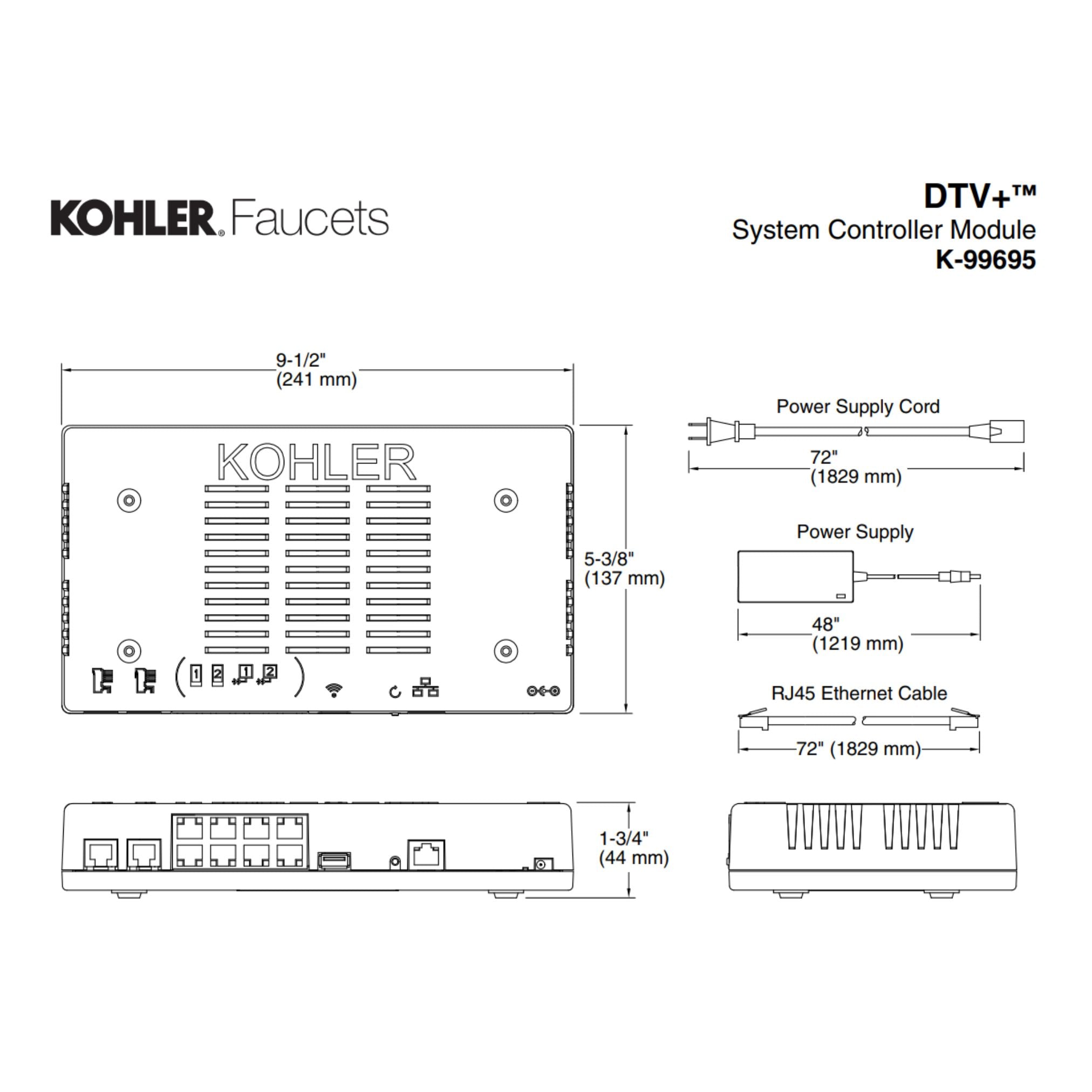 The DTV+ System Control Module acts as the wiring center and "brain" for the DTV+ showering system, providing connections for every component and powering the digital interfaces.