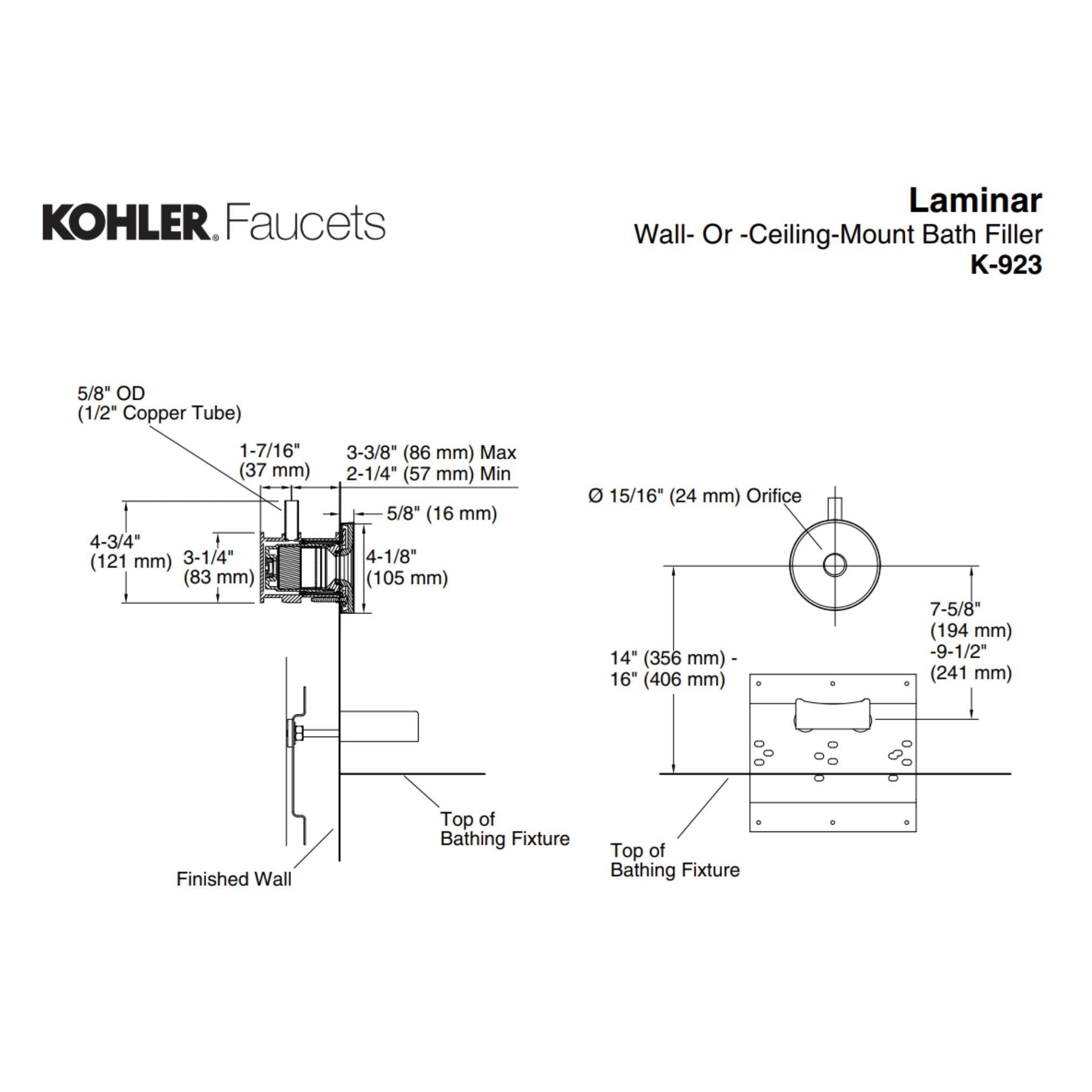 This laminar flow bath filler adds elegance to your bath. The visually exquisite solid stream of water is mesmerizing with a pressure-compensating flow control that delivers a clear column of water without splatter. This bath filler is ideal for ceiling or wall mounting.