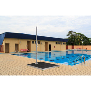 Square shower base measures approximately 33 x 30", perfect for standard outdoor shower installations. Pre-drilled center hole for easy water inlet connection and provide drilling bits for drillng mounting holes, total install by yourself without calling plumber. The dark grey surface complements any outdoor décor, while the stainless steel frame ensures lasting durability against weather exposure. Perfect for pool areas, beach houses, or garden spaces, this shower base offers both practical functionality and refined aesthetics.
