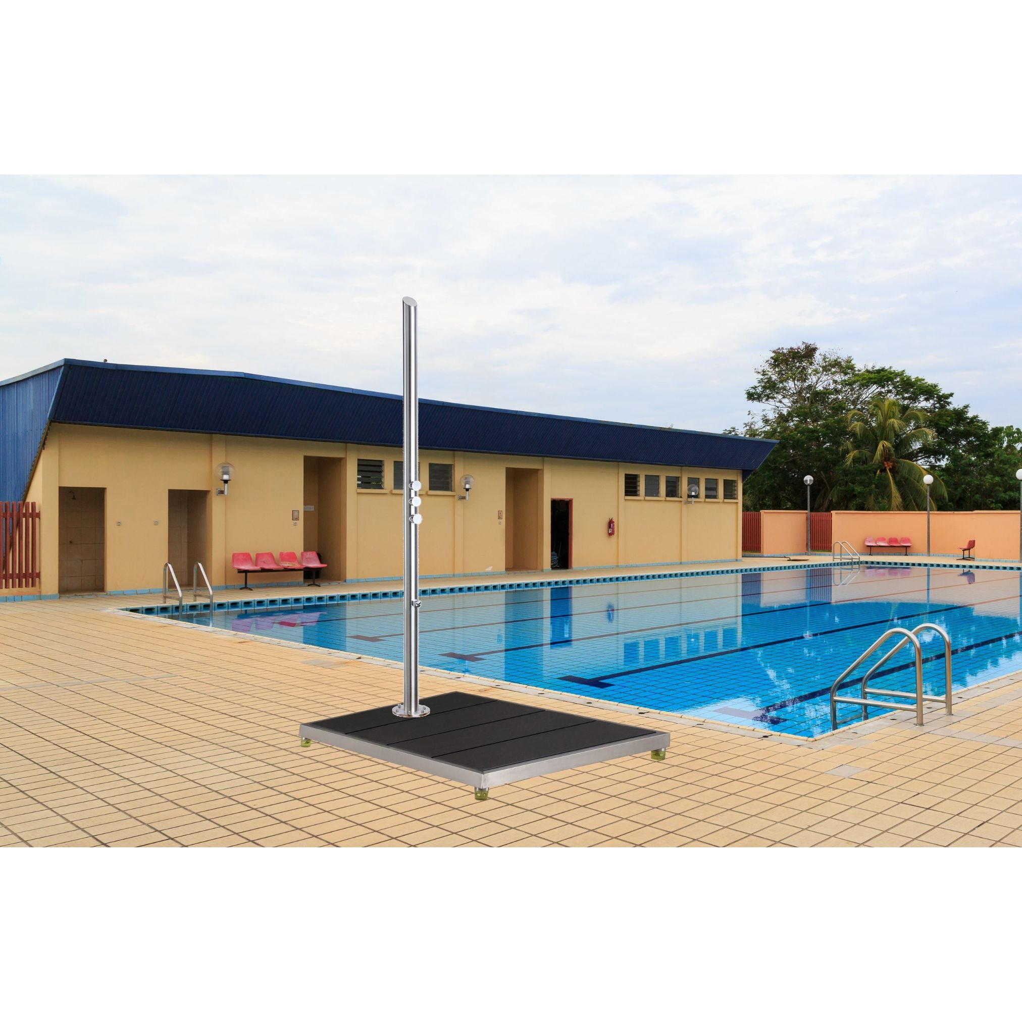 Transform your outdoor showering experience with this premium shower base featuring sleek, parallel-grooved design. The durable construction combines style and functionality, with strategically spaced slats that provide excellent water drainage while maintaining a stable, slip-resistant surface.