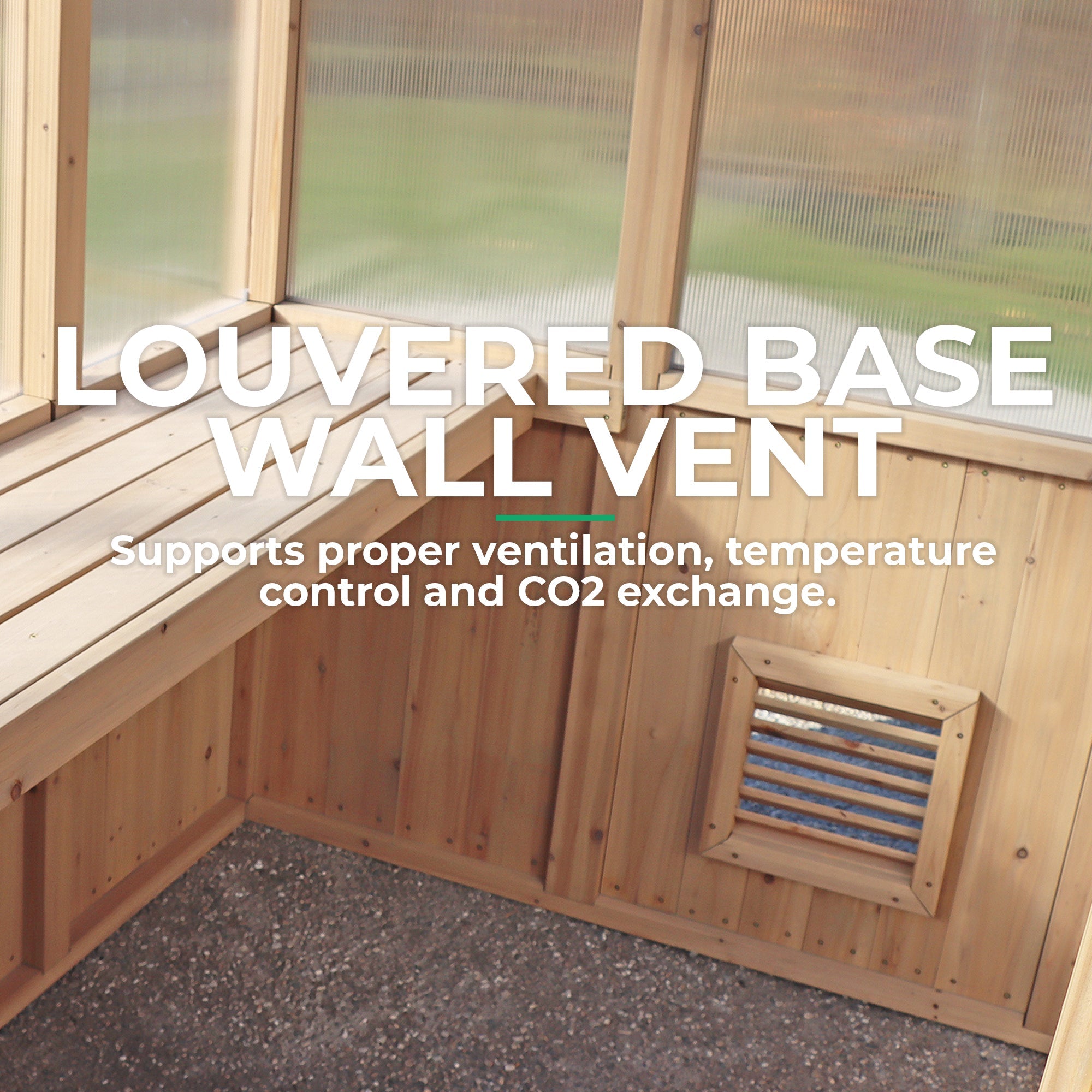• Louvered base wall vent is necessary for optimum air intake and plant health.