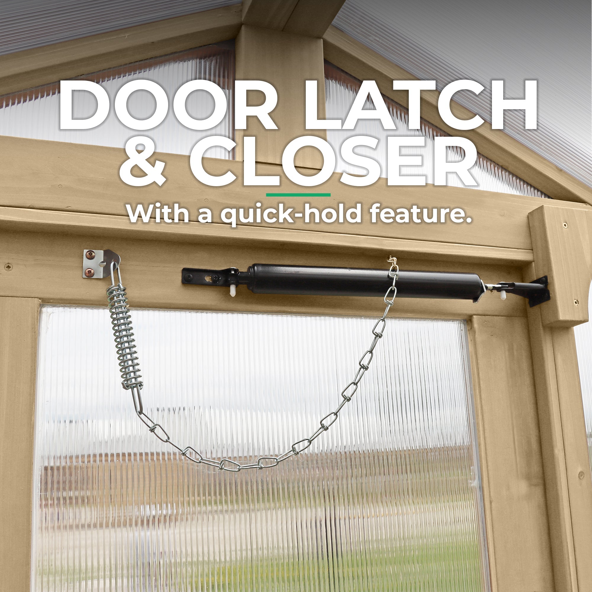 • Cedar door includes door latch and closer with a quick-hold feature to keep the door open.
