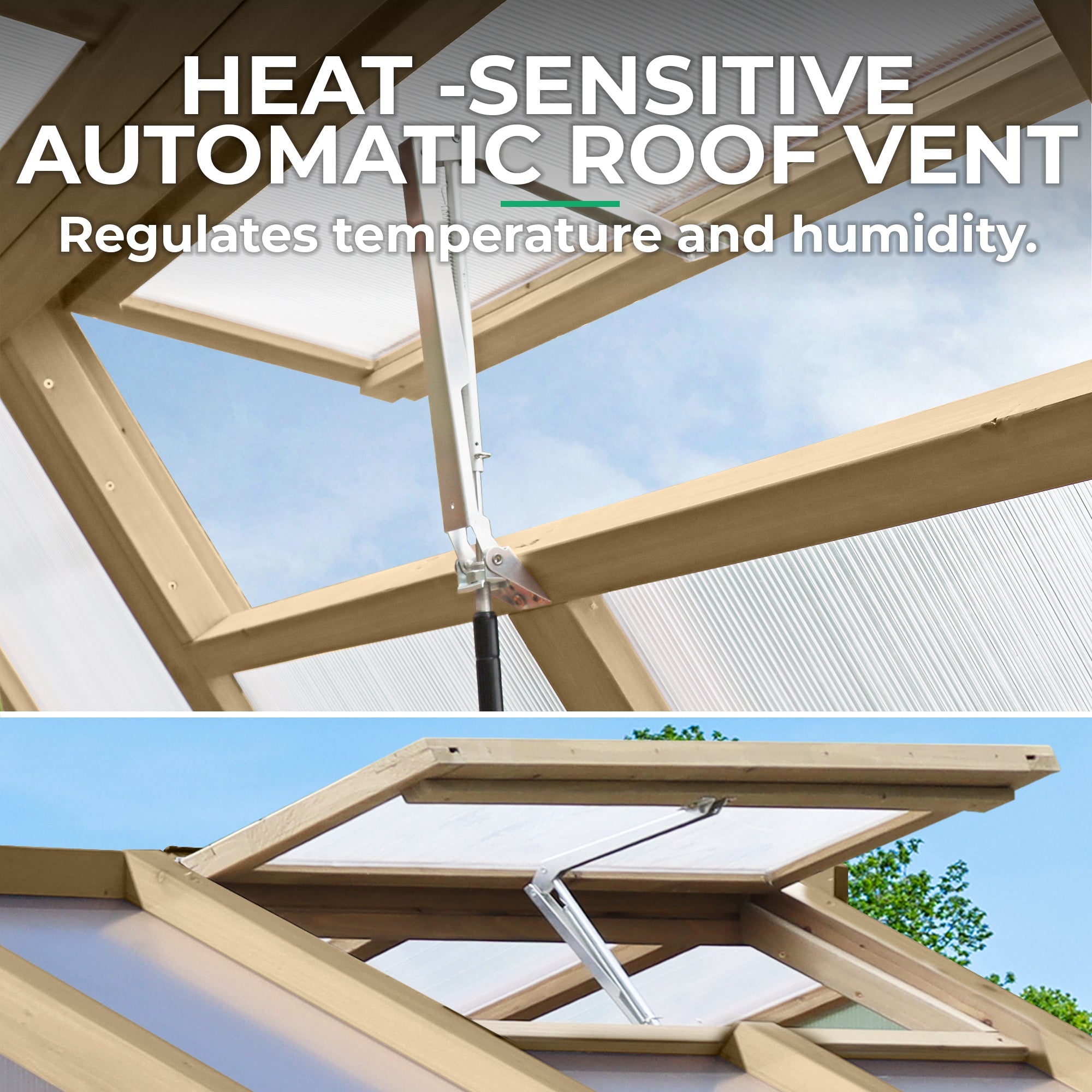 • Two - heat sensitive, automatic roof vent opener maintains temperature and humidity.